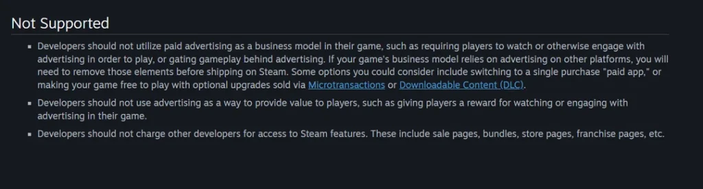 While forced advertisements are prohibited, Valve still allows certain advertising methods: