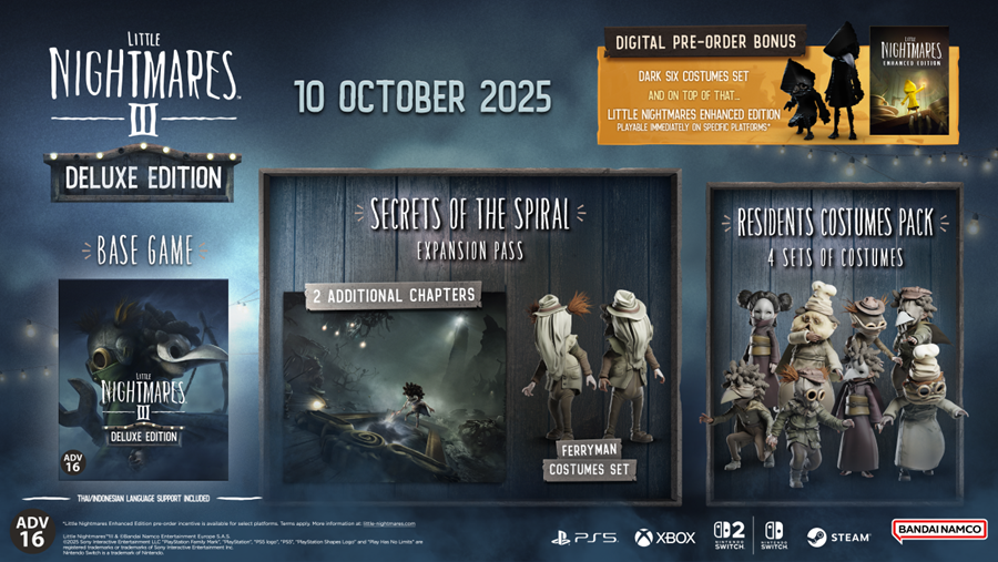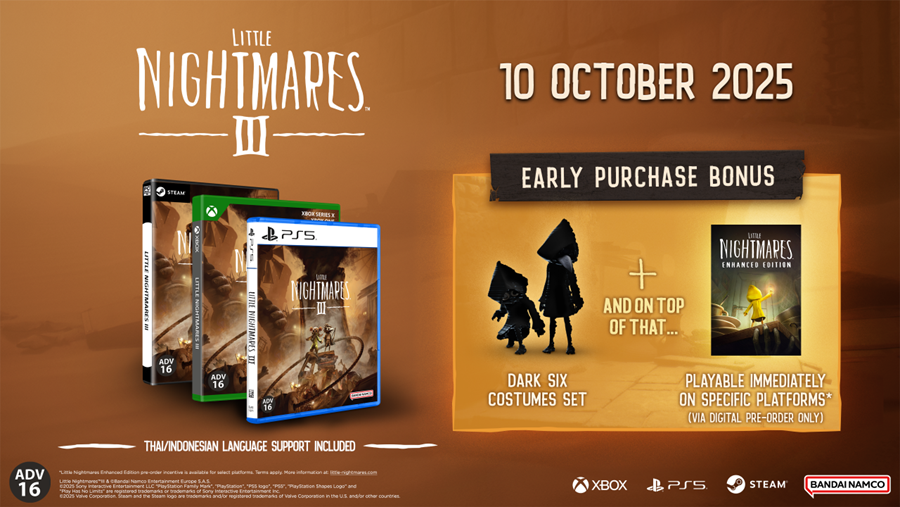 Bandai Namco Entertainment Asia is pleased to share Little Nightmares III, developed by Supermassive Games, will launch on Friday, 10 October 2025 for PlayStation®5, PlayStation®4, Nintendo Switch™ 2, Nintendo Switch™, Xbox Series X|S, Xbox One and PC via Steam®. Pre-orders have also started today on all platforms, except Nintendo Switch™ 2 and Nintendo Switch™, which will start at a later date. The franchise has now sold 20 million units since the release of Little Nightmares in 2017. Trapped in the Spiral, a world filled with delusions, Low & Alone are looking for a way out. Through their journey, they enter the Carnevale, a decrepit funfair which is the focus of the new trailer and gameplay deep dive. Watch the trailer now: