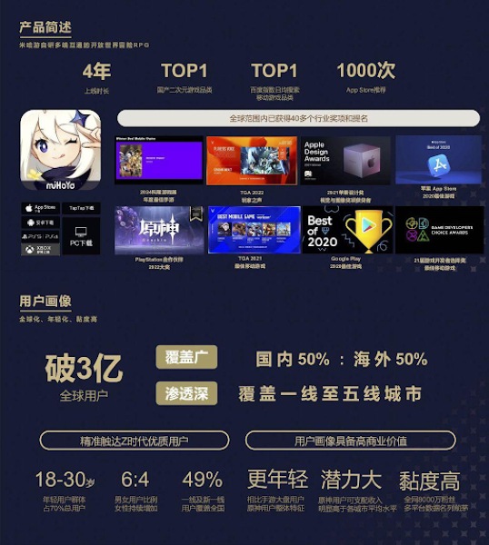 The demographic breakdown is just as impressive. The global player base is evenly split between domestic (Chinese) and international players, showing that Genshin’s appeal transcends regions and languages. Around 70% of the player base is between 18 and 30 years old, reflecting the game’s popularity among Gen Z. Gender-wise, 60% of Genshin players are male and 40% are female, a relatively balanced ratio for a game of this genre. What’s even more notable is the concentration of players in first-tier cities or their equivalents—many of whom have significantly higher-than-average disposable incomes. This paints a picture of a young, urban, and affluent global community deeply engaged with the world of Teyvat.