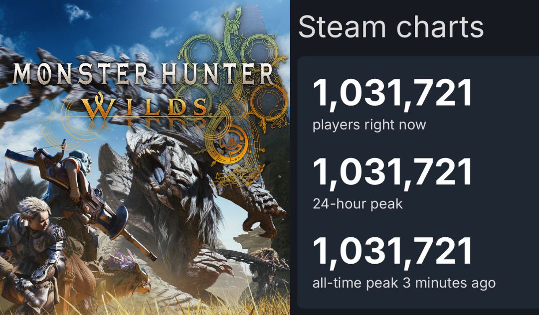 In an impressive debut, Monster Hunter Wilds has attracted over 1 million concurrent players on Steam within hours of its release, securing its position among the platform’s top 10 most-played games.