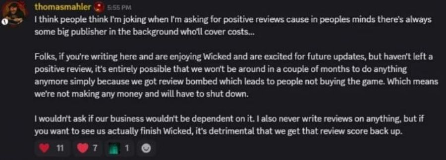 CEO Thomas Mahler expressed apprehensions on the game’s Discord channel, suggesting that the studio’s future could be jeopardized if the negative feedback continues to impact sales. He urged satisfied players to leave positive reviews to counterbalance the negativity.