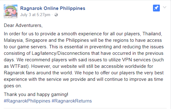 Just a few days in, however, RO servers have started experiencing apparent connection issues. And just last July 3, 2017, RO’s management team decided to limit access to the game to just four countries for the meantime. This lead to some strong criticism, with some players pointing out that RO was supposed to have a no-IP restriction policy. RO Philippines have said they are listening to gamers’ take on this so they could formulate a much better solution. So, what do you think guys? Any ideas? Post your comments and/or solutions below and let’s try to help the RO community!