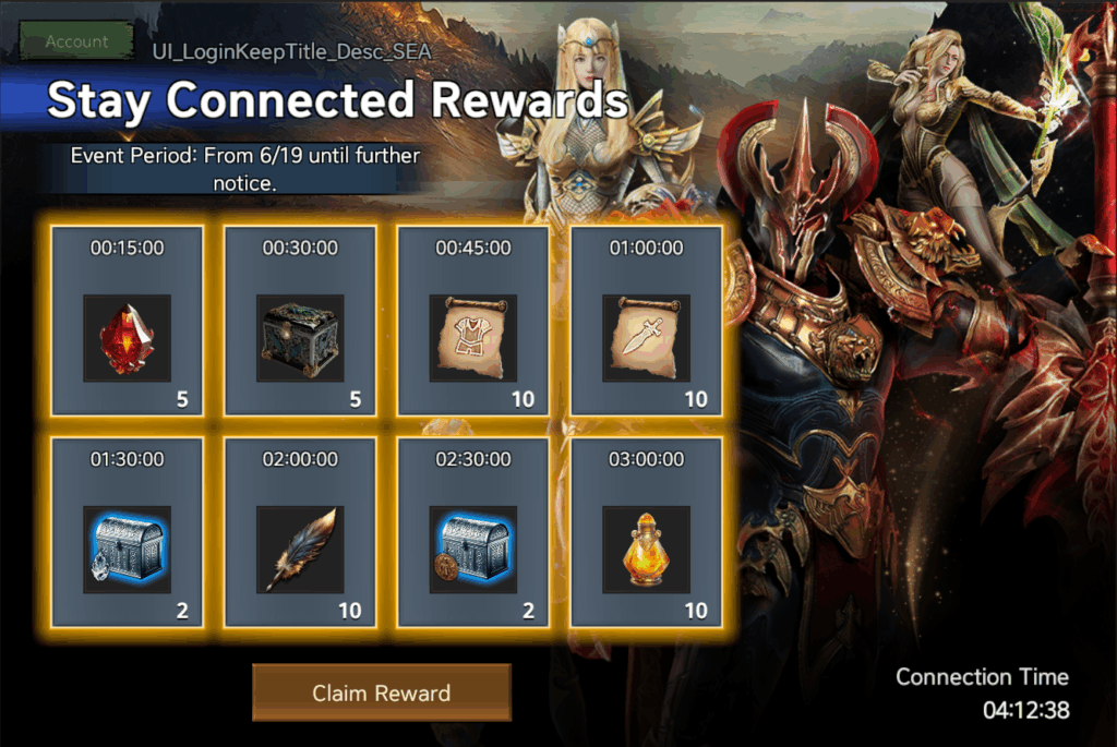Receive rewards every 15 minutes for up to 3 hours of daily playtime