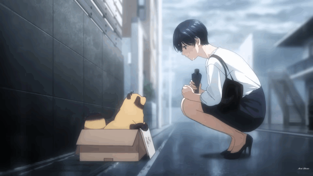 Watching this anime feels like being hugged. It has a delightful (and adult) main character who’s true to herself, a cute doggo who can talk on paper, charming side characters, and a slow, calming, and quiet mood that is ideal to watch on rainy days.
